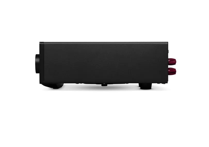 Zaprojektowany z naciskiem na wydajność, bez zbędnych elementów. Aluminiowy front zawiera wyłącznie niezbędne elementy - zasilanie, selektory wejść oraz płynną regulację głośności.