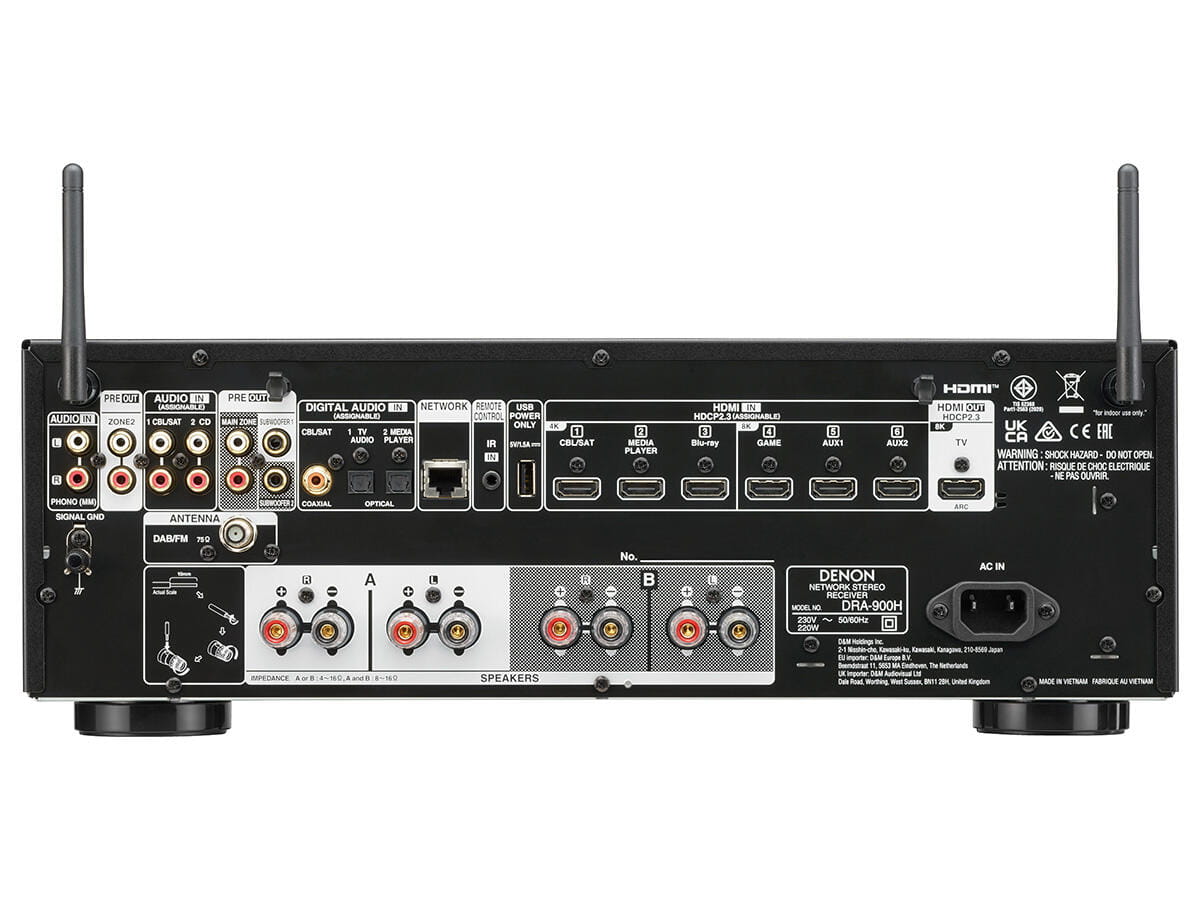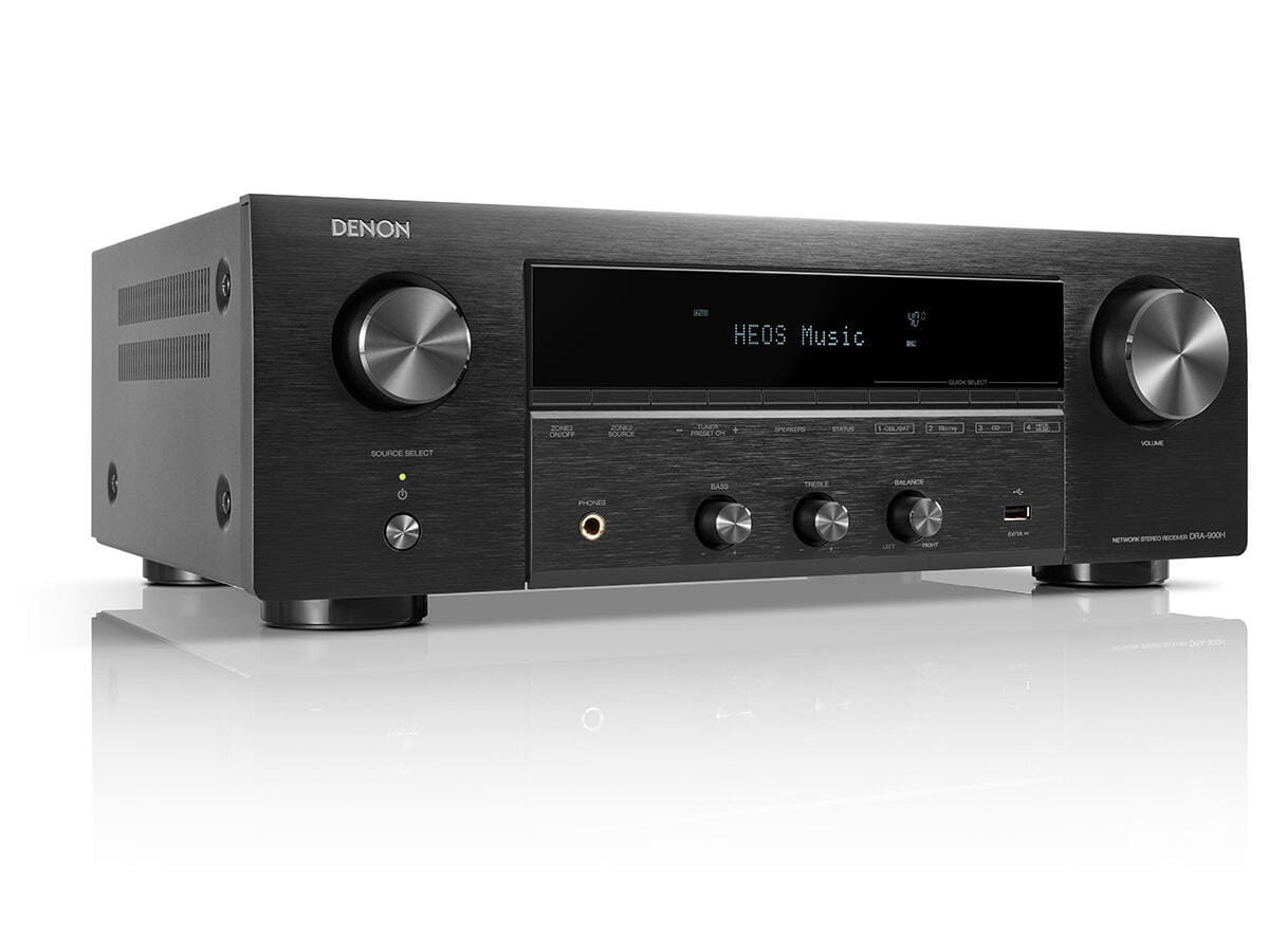 Ciesz się wysoką jakością odsłuchu i wideo 8K HDMI z 2-kanałowego sieciowego amplitunera stereo z wbudowanym bezprzewodowym strumieniowaniem muzyki HEOS® i tunerem DAB+.