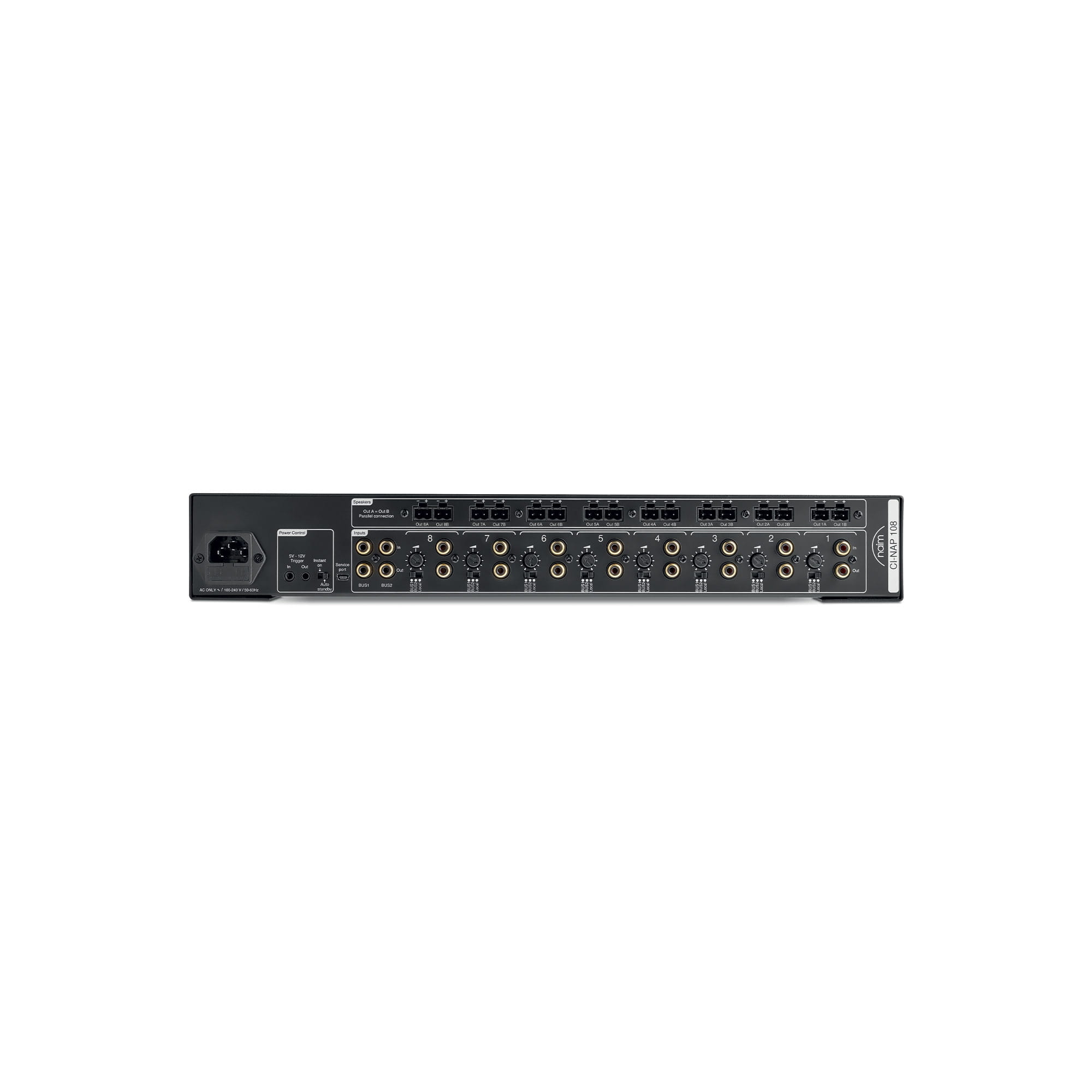 CI-NAP 108 to urządzenie audio do montażu w szafie rack, które oferuje 8 kanałowy wzmacniacz mocy, umożliwiając pokrycie dużych obszarów odsłuchowych z zapewnieniem najwyszej jakości dźwięku tak charakterystycznej dla urządzeń Naim. Urządzenie posiada niezależne wejścia które umożliwiają rozdzielenie 8 różnych strumieni audio dla zapewnia większej elastyczności w różnych systemach audio video.